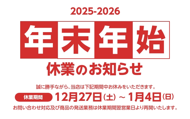 年末最終発送は12月25日0時までのご注文となります。0時以降のご注文の発送は1月5日より